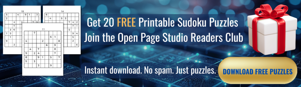 We love celebrating your passion for puzzles and personal growth. When you join the Open Page Studio Readers Club, you’ll receive 20 free printable Sudoku puzzles to start your brain‑training journey right away. By subscribing to our newsletter, you’ll also get updates on new releases and exclusive tips from our editorial team. Becoming part of our community gives you access to content designed to support long‑term brain health and everyday mental wellness.