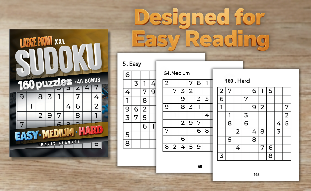 Our 1000 Sudoku Large Print series is designed to support your progress step by step. You can choose from Very Easy to Extreme levels, all printed in large print for maximum comfort and readability. Each book is produced with care to ensure a stress‑free experience for your eyes. Whether you’re a beginner or a seasoned solver, our Sudoku books are the ideal companion for daily relaxation and cognitive fitness.