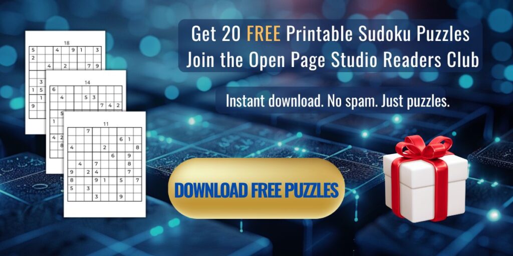 We love celebrating your passion for puzzles and personal growth. When you join the Open Page Studio Readers Club, you’ll receive 20 free printable Sudoku puzzles to start your brain‑training journey right away. By subscribing to our newsletter, you’ll also get updates on new releases and exclusive tips from our editorial team. Becoming part of our community gives you access to content designed to support long‑term brain health and everyday mental wellness.